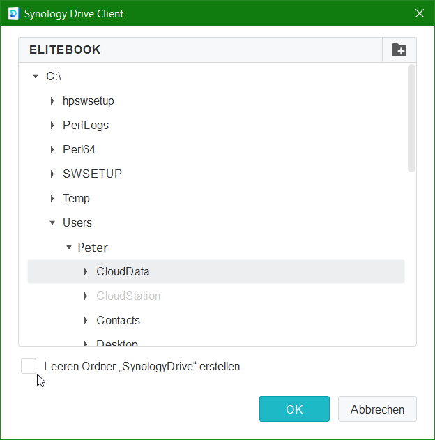 Es muss darauf geachtet werden, dass der Ordner diesen man synchronisieren möchte unter dem gewünschten Pfad zu stehen kommt. Standardmässig ist nämlich das Kontrollkästchen „Leeren Ordner Drive erstellen“ aktiviert.